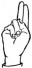 На ћирилици написано ИВКА ПАУНОВИЋ састоји се из 12 слова [?]. Исписано ћириличном једноручном азбуком за глувонеме: